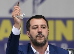 Alors que la Ligue (du Nord), dont Salvini est le représentant le plus visible, avait commencé, à l’époque d’Umberto Bossi, par participer à des rites païens sur les bords du Pô, la Ligue (étendue à toute l’Italie) se fait aujourd’hui le chantre d’une Europe façonnée par l’Église. À la veille des élections européennes, le 18 mai 2019, Matteo Salvini avait à Milan énuméré les saints patrons de l’Europe pour l’Église catholique : Benoît de Nursie, Catherine de Sienne, Cyrille et Méthode… Il avait, en agitant pour ce faire un chapelet, voué l’Église et par la même occasion sa propre victoire électorale prochaine au « Cœur immaculé de la Vierge ».